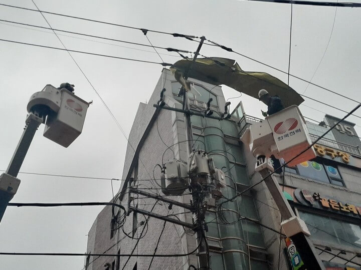 우선 국민은행 인근 도로변에 우선 전력을 공급한 후, 추가 점검을 거쳐 아파트 단지에도 전력 복구를 진행했습니다.